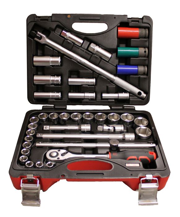 - 37 Piece 1/2" Drive Metric Socket & Impact Socket Set