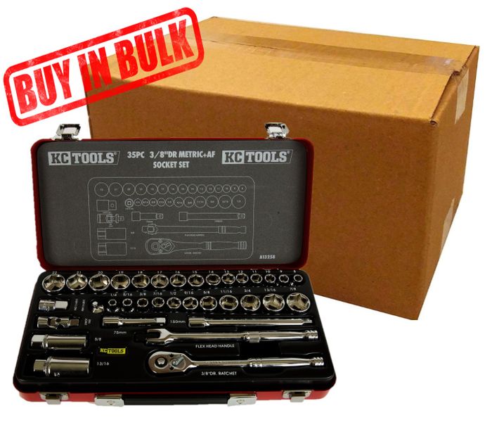 - 35 Piece 3/8" Drive Socket Set - AF & Metric - Bulk Pack of 5