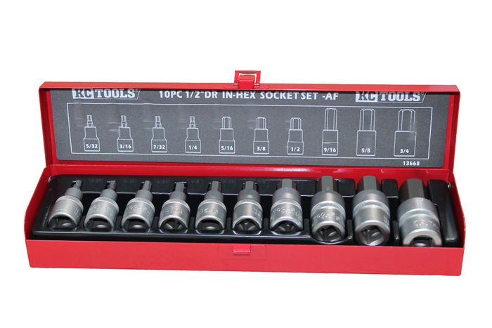 - 10 Piece 1/2" Drive In-Hex Socket Set - AF